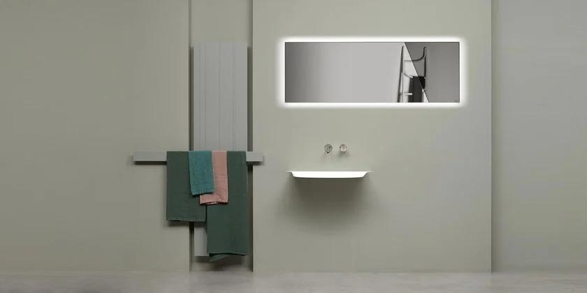 آینه دیواری مستطیلی سرویس بهداشتی همراه با نورپردازی مدل APICE