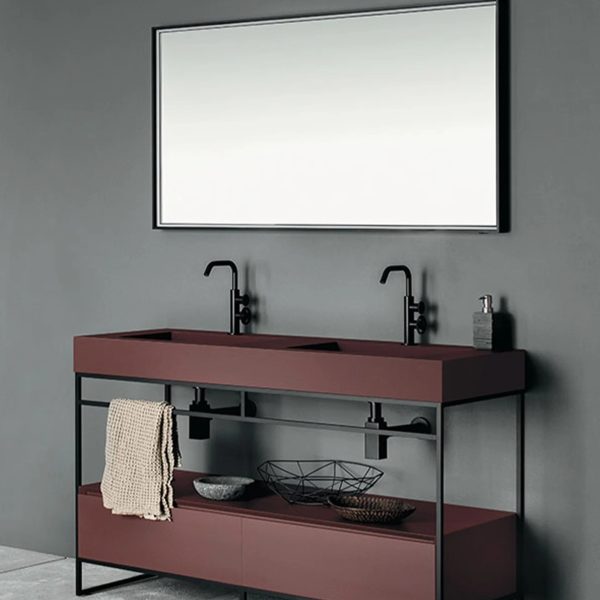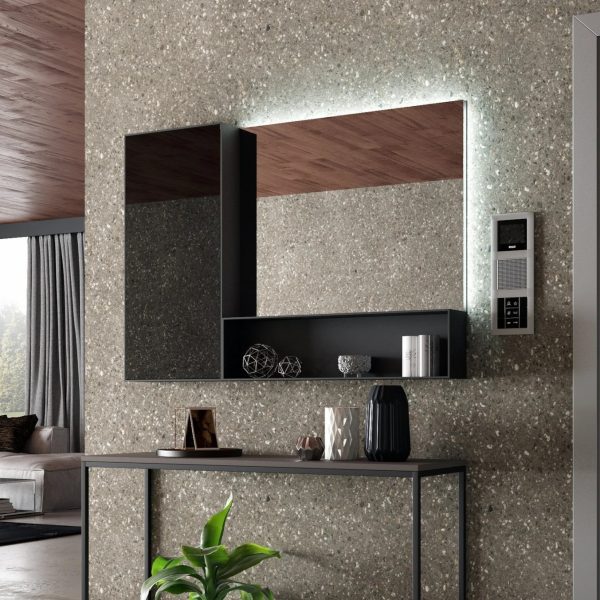 آینه دیواری با قاب فلزی طبقهدار همراه با نورپردازی مدل POLLUX